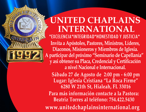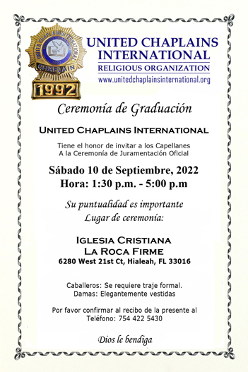 For Renewals Chaplaincy in United States and International please contact The President of UCHI: Pr. José Figueroa at (727) 455 2160.